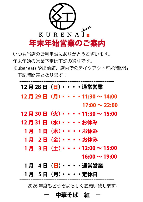 - 年末年始の営業時間をアップいたしました。詳しくは>>
