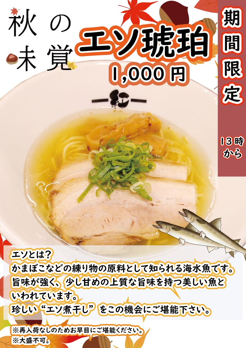 - 期間限定メニュー「エソ琥珀」が登場!詳しくは>>